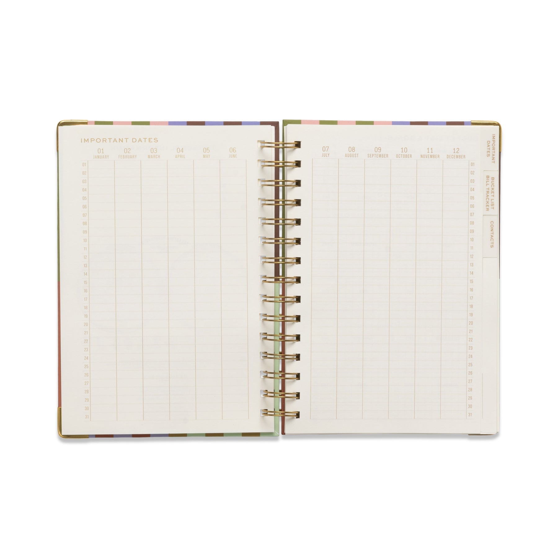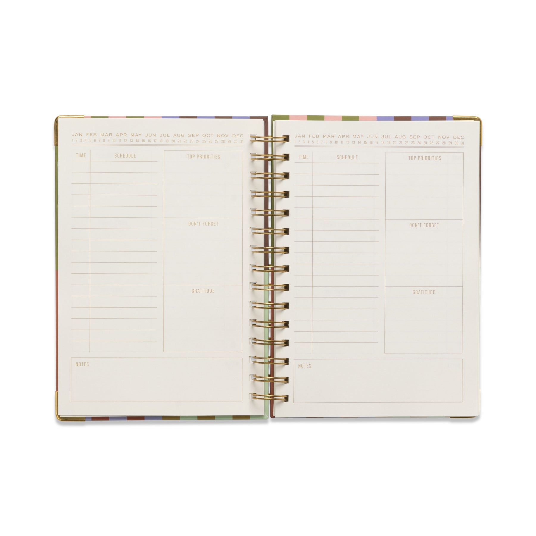 Each planner is wirebound with a hardback cover and metal corner protectors for durability and a touch of gold finish.