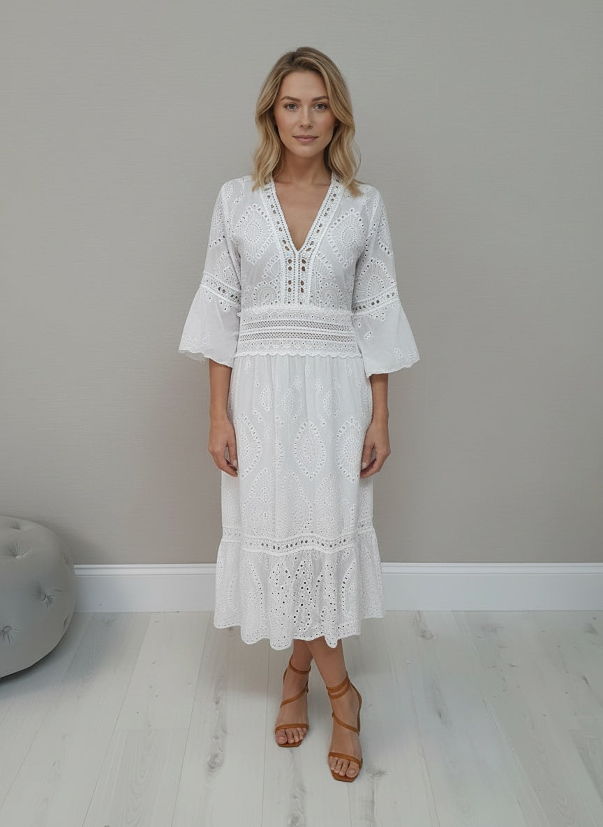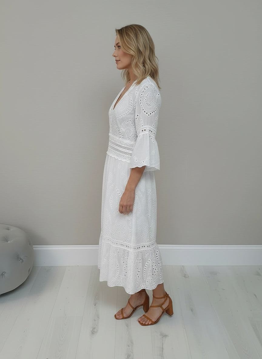 This gorgeous white broderie anglaise dress with crochet details is the perfect summer staple.