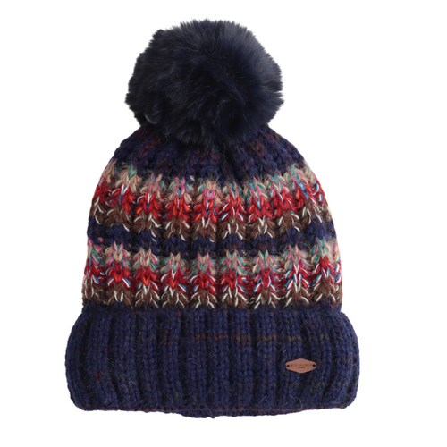 Navy Stripes Knitted Bobble Hat